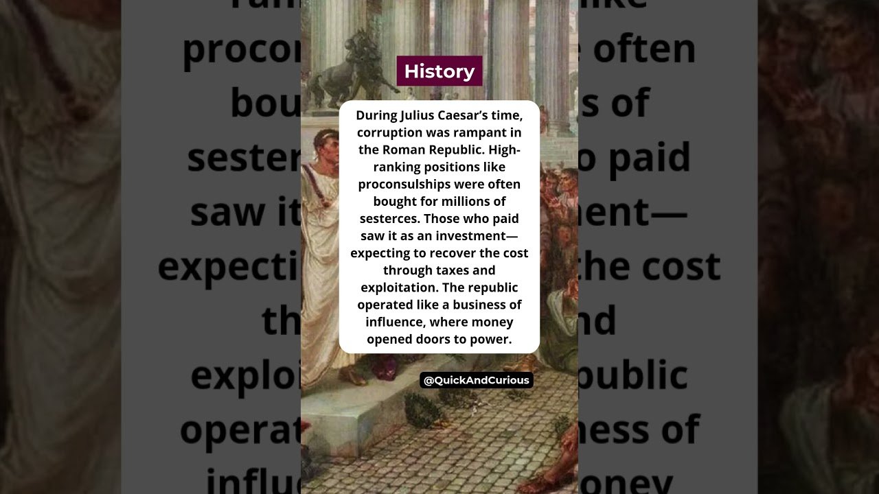 Power had a price tag in ancient Rome. Officials didn’t just campaign—they invested in office like a business. Corruption wasn’t hidden—it was part of the system. @QuickAndCurious #history #quickandcurious #romanempire #juliuscaesar #corruption #republic #ancientrome #politics #power #bribery ⚠️ This video contains copyrighted materials used under the Fair Use principle. It is intended for educational and informational purposes only.